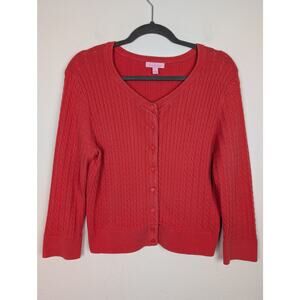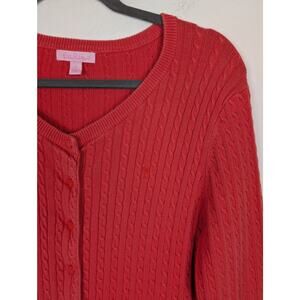 Lilly Pulitzer Cardigan Sweater Cable Knit Coral Preppy Orange Pink Size L