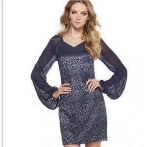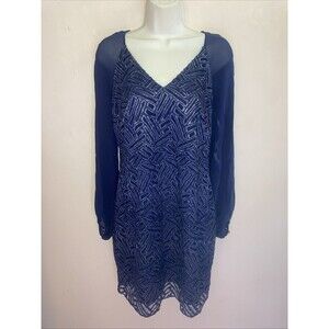 Lilly Pulitzer Carleigh Tunic Dress Geo Lace True Navy Silver L/S Sz 2