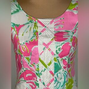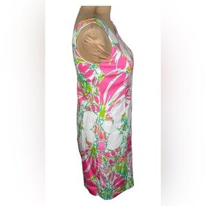 Lilly Pulitzer Cathy Flamingo Pink Don't Give a Cluck Print Shift Dress.