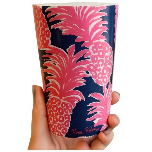Lilly Pulitzer Ceramic Coffee Travel Mug Cup Pink Pineapple Blue 14 OZ