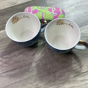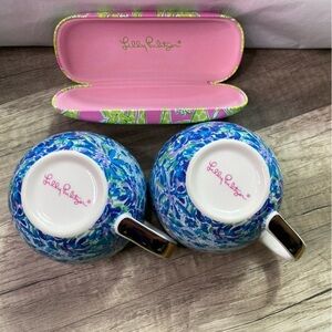 2 Lilly Pulitzer Coffee Tea Cups Ceramic Mug Floral Design 12 Oz Hidden Lion