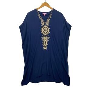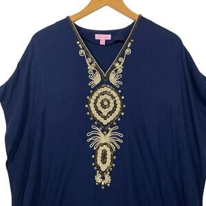 Elevate your style with the Lilly Pulitzer Navy Embellished Caftan Dress. This elegant piece features intricate embellishments, perfect for any occasion.