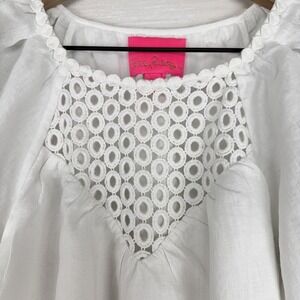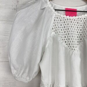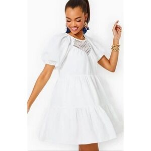 Lilly Pulitzer Charlet Short Puff Sleeve 100% Linen Dress Size 2 White Tiered