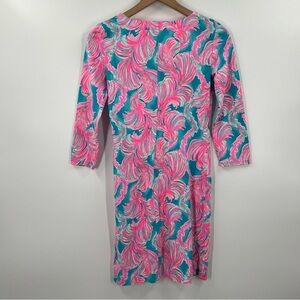 Lilly Pulitzer Charley Dress 3/4 Sleeve Casual Cotton Vibrant Pink Blue