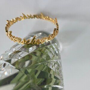 This is a Lilly Pulitzer CHEERS bangle. Gold tone, the word CHEERS in a continuous loop around the bracelet. SO CUTE!!