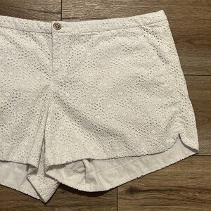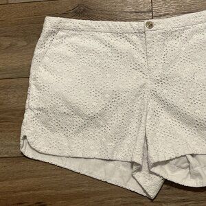 Lilly Pulitzer Chino Shorts SZ 16 White Crochet Knit Cotton Pockets Beach