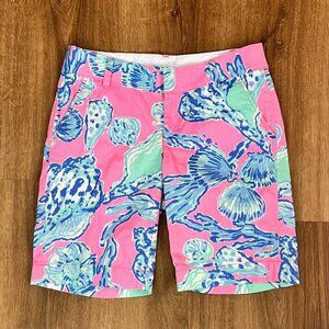 Lilly Pulitzer Chipper Shorts Pink Blue Tropical Seashells Sz 4