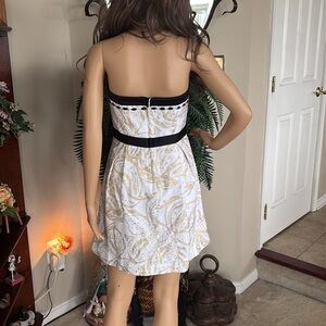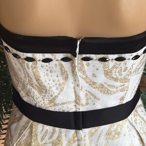 Lilly Pulitzer Christine Strapless Dress Gold Metallic Floral Black Beaded