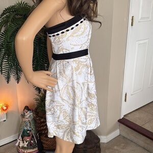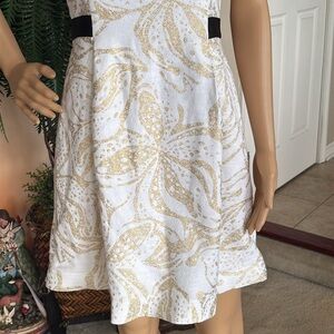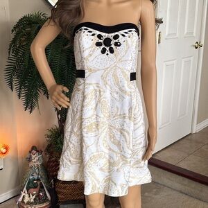 Lilly Pulitzer Christine Strapless Dress Gold Metallic Floral Black Beaded.