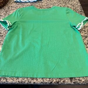 Designed for ultimate comfort, the Lilly Pulitzer® Clairmont Trimmed Knit To is straight fit top with banded crew neckline and short sleeves. It features ric rac trimmed sleeves, branded hardware, regular fit, pull-on style, and straight hem.