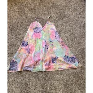 Bright, breezy, and timeless! This Lilly Pulitzer Clara Slip Dress in size Small features a pink tropical multicolor print, lightweight silk fabric, and a playful asymmetric hemline.