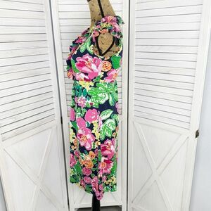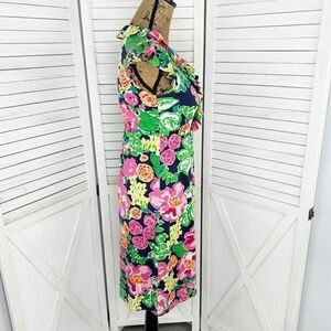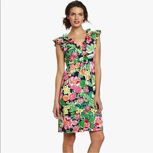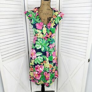 Lilly Pulitzer Clare Floral Ruff Trim Silk Jersey Knit Dress XS Gateway Garden