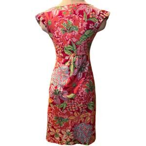 Lilly Pulitzer Clare Silk Blend Dress Ruffle Cap Sleeve Floral XS Whimsy Preppy