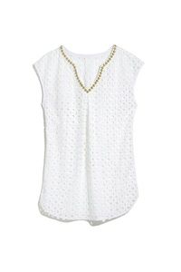 Turn up the heat with the Lilly Pulitzer for Target women's eyelet tunic cover-up in white. You'll love how your favorite bikini looks peeking out of this breezy, beachy tunic. Its unlined, see-through eyelet lace and gold tone metallic studs around the neckline are perfectly on trend for summer. And with a center pintuck dart and mini cap sleeves, you'll look as fabulous on the outside as you are on the inside. Cheers!