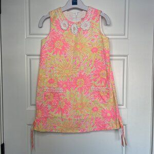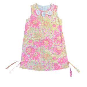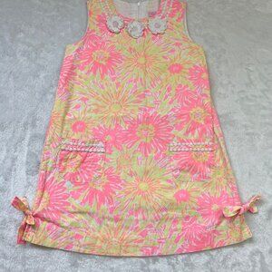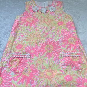 Lilly Pulitzer Classic Shift Dress Girls 6 100% Cotton Floral Pink Yellow Pocket