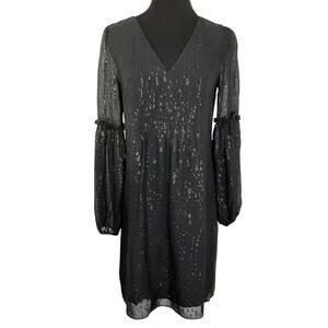 Lilly Pulitzer Cleme Long Sleeve Silk Dress Black Shimmer Womens 00 Holiday NWT