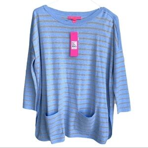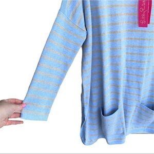 Lilly Pulitzer Cobo Heather Cool Blue Coastal Shell Stripe Sweater Extra Small