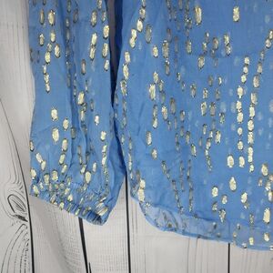 Lilly Pulitzer Colby True Blue Gold Dot Jacquard Metallic Blouse Top