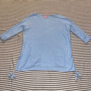 Lilly Pulitzer Colene Sweater Heathered Blue Women XS Tassels Oversized Boxy