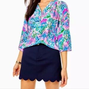 Lilly Pulitzer Colette Skort True Navy Scalloped Hem 100% Cotton - size 6