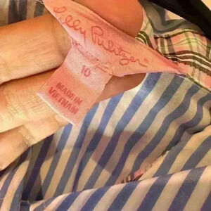Lilly Pulitzer Color Flip Cuffs Blue and White Stripe Long Sleeve Button Up