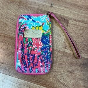 Lilly Pulitzer Colorful Pink Zip Closure Wristlet Wallet One Size