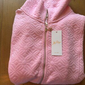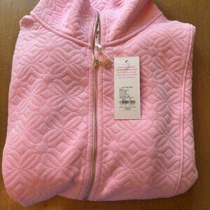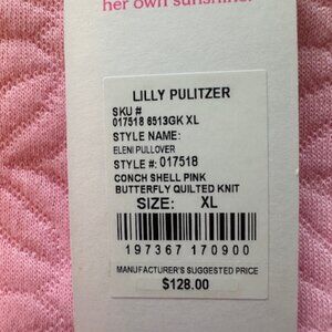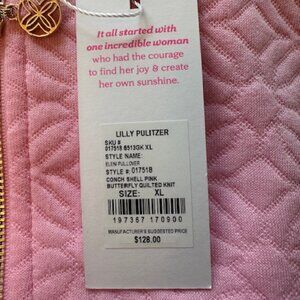 Lilly Pulitzer Conch shell Pink Butterfly quilted knit Elini pullover, NWT, Size XL