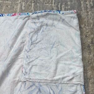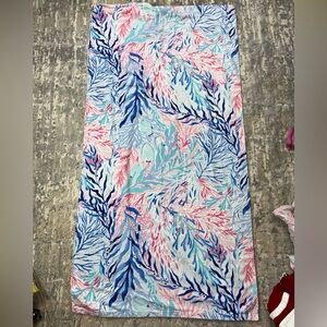 Lilly Pulitzer Convertible Beach Towel Backpack Kaleidoscope Coral Pink Blue. The towel measures 30" X 61" and when folded up as a bag it measures 15" X 18". Excellent condition. rated 10/10.