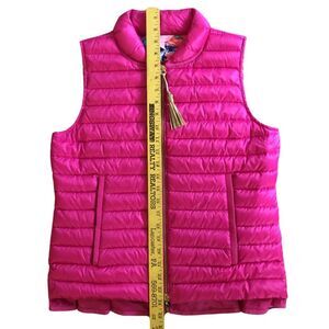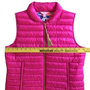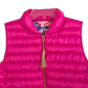 Lilly Pulitzer Cora Down Puffer Vest Womens Size S Pink Ruffle Tassel Zip Pull