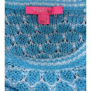 Lilly Pulitzer Corabelle Sweater Wool Blend Blue White Sz L Feminine Coquette