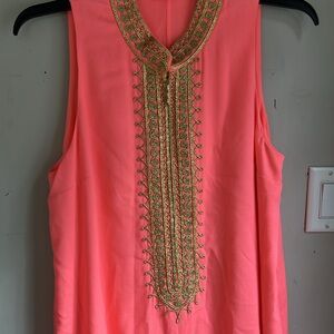 Lilly Pulitzer Coral Dress with Gold Embroidery