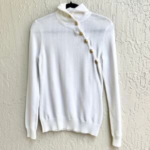 Lilly Pulitzer Long Sleeve Asymmetrical Button Turtleneck Sweater White Women's Size small