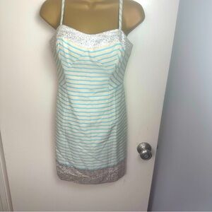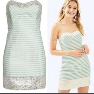 Lilly Pulitzer, Cream, Blue, Remi women’s slight shimmering Dress In Blue Horizon Bayview Stripe metallic. Size 0, never worn, in like new condition.