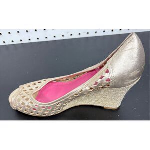 Lilly Pulitzer Cream basketweave patent leather espadrilles size 8