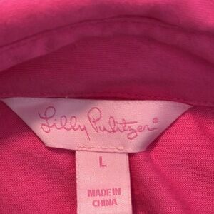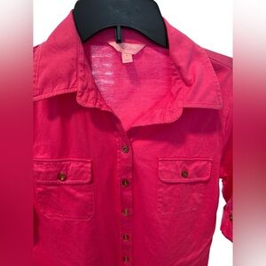 Lilly Pulitzer Cruiser Camp Shirt Button Up Pink Size Large Roll Tab Sleeves