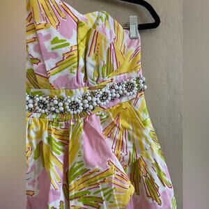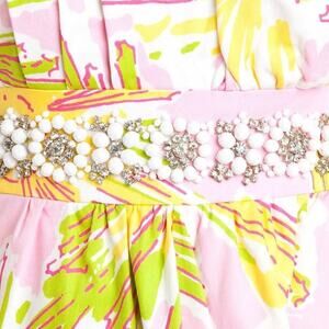 Lilly Pulitzer Crystal Skipping on Sunshine Yellow Pink Beaded Strapless Dress 4