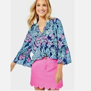 Lilly Pulitzer DAKOTA Top Blouse Amalfi High Tide Navy Choose Size M