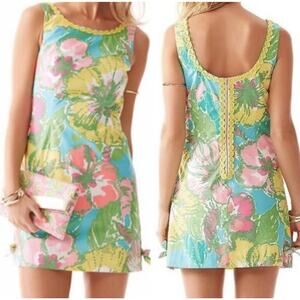 Lilly Pulitzer DELIA Shift Dress SHORELY BLUE Big Flirt Pink Green Blue 00 READ
