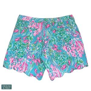 Lilly Pulitzer Darci Knit Shorts Amalfi Blue Pink Floral Scalloped Hem Resort 6