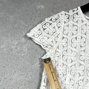 Lilly Pulitzer Darla Peplum Top Size Small White Eyelet Floral Lace Crochet Bow