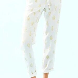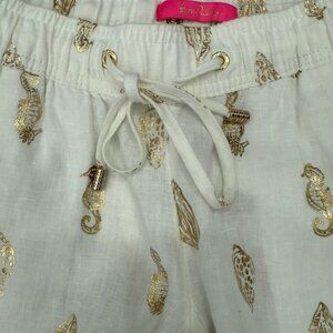 Lilly Pulitzer Daylen Linen Palazzo Pant with Gold Embossed Shells Size Small