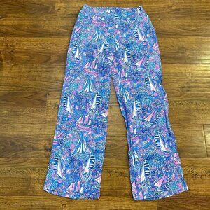 Lilly Pulitzer Deri Linen Palazzo Pants, Boca Blue It's a Sailabration Size S