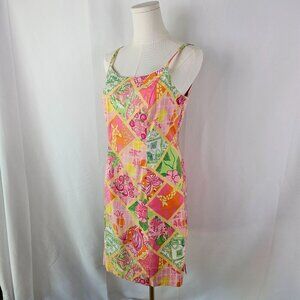 Lilly Pulitzer Diamond Sleeveless Printed Pink Patchwork Sundress Size 6