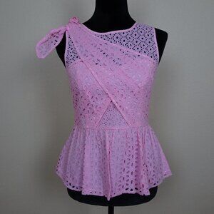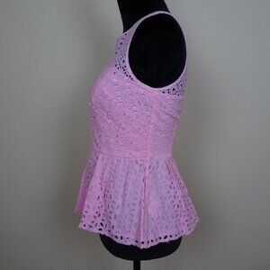 Lilly Pulitzer Diara Pink Eyelet Lace Top Peplum Sleeveless Size 0