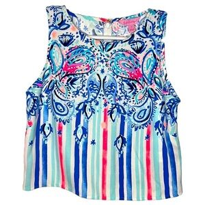 Lilly Pulitzer Donna Boxy Cropped Striped Floral Sleeveless Tank Top