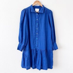 Lilly Pulitzer Drena Tiered Long Sleeve Linen Shirtdress in Martinique Blue size 4.