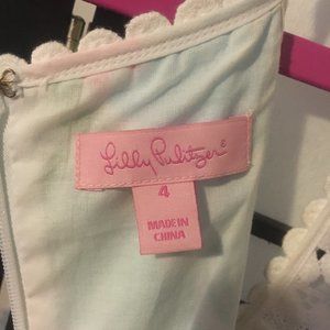 Size 4 Lilly Dress with Lace at the top and lace straps. Beautiful greens, Blues and a pop of Pink.