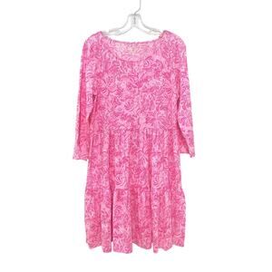 Lilly Pulitzer Dress Geanna Womens Large Pink Floral Tiered Cotton Boho Casual