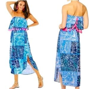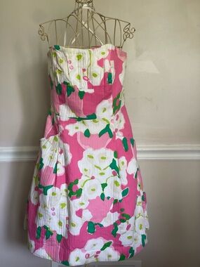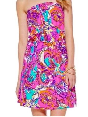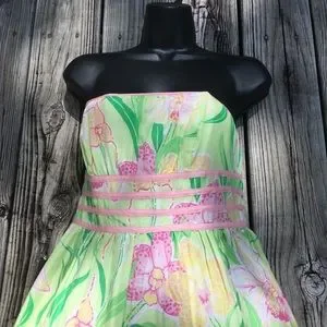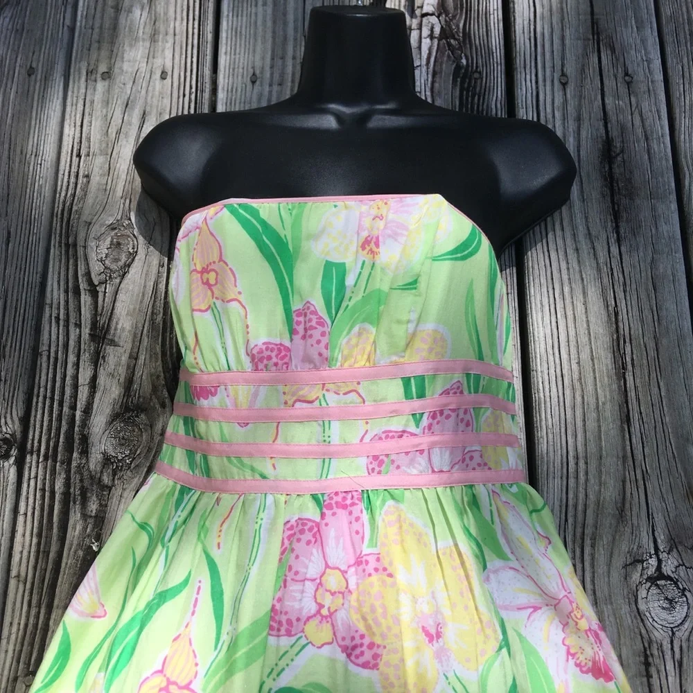 Lilly Pulitzer silk blend orchids strapless Katrina dress