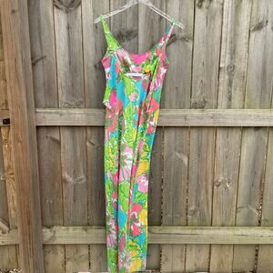 Lilly Pulitzer Palm Big Flirt Jersey Maxi Tank Dress Tie Back Multicolor XS